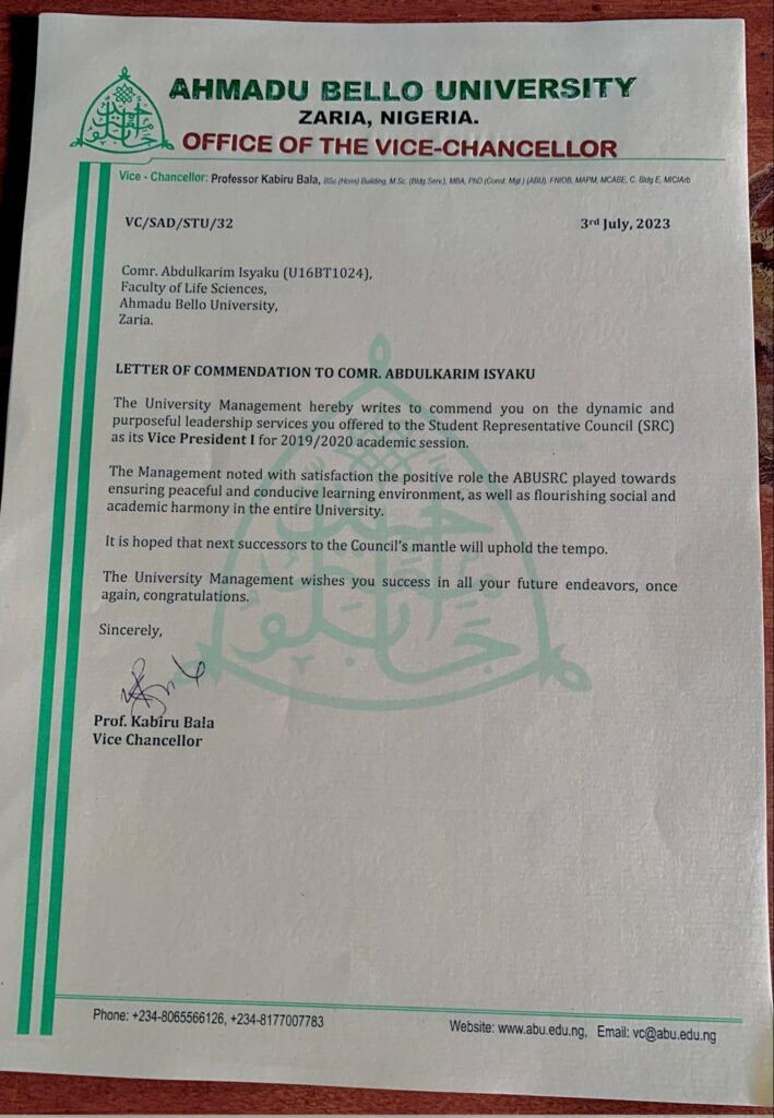Remember that my name is Abdulkarim Isyaku, right?